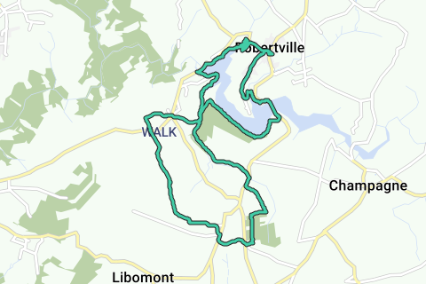 Diese Wanderung besteht aus 2 bestehenden Rundwanderungen, die ineinander übergehen. Wir beginnen an der Kirche in Robertville. Folgen Sie zuerst den Schildern mit dem Gelben Rechteck. Dieser verläuft ein Stück entlang des Robertville-Sees über den Staudamm. Nach etwa 2 km wechseln wir zur Rundwanderung mit dem Roten Rechteck. Diese führt uns weg vom "See" und durch das Dörfchen mit dem idealen Namen, WALK. Wieder zurück am Anfang der roten Schleife wechseln wir erneut zur Rundwanderung mit dem Gelben Rechteck (geradeaus, nicht nach links, woher wir kommen). Jetzt gehen wir rund um den "See" bis zum Ausgangspunkt. Die Strecke ist 12 km lang.