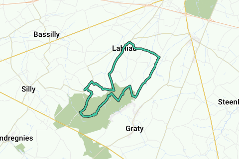 An der Kapelle von Saint-Marcoult, wo du der "MaquisStory" über den Widerstand während des Zweiten Weltkriegs zuhören kannst, biegst du in die Sackgasse der Rue du Haute Pensée ein. Bald erreichst du ein Informationsschild über die Abwürfe, die hier während des Zweiten Weltkriegs durch den Widerstand stattfanden. Der Maquis von Saint-Marcoult - die weitläufige Ebene, wo mit Fallschirmen Material, einschließlich Waffen, von der geheimen Armee abgeworfen wurde - liegt links von der Straße. Wenn die Felder nicht zu hoch stehen, hast du einen wunderschönen Blick über diese Ebene. Etwas weiter biegst du links in den Bois de Ligne ein. Im Wald zeigt ein braver Herr, genannt "Biloute", den Weg. Du folgst nun etwa 7 Kilometer dem GRP 123 Tour de la Wallonie Piccarde. An der Rue de Lekernay (der Lekkernijstraat) biegt der GRP rechts ab, aber du wandelst weiter geradeaus in die Cache Walraevend. Am Ende der Straße biegst du links ab und gehst zurück in Richtung Saint-Marcoult. An einem Informationsschild und einem kleinen Spielplatz biegst du rechts ab. Zwischen den Feldern führt der Weg zurück zum Ausgangspunkt.
