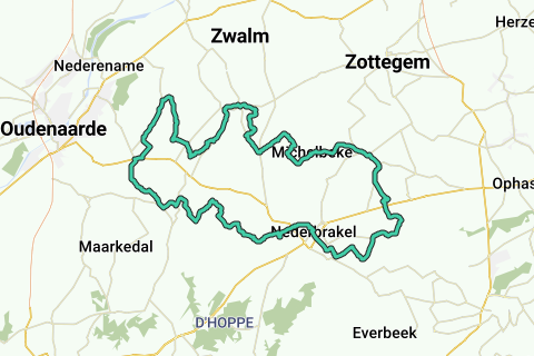 Schöne Fahrradroute von 45 km durch die hügelige Landschaft der Vlaamse Ardennen (550 Höhenmeter).