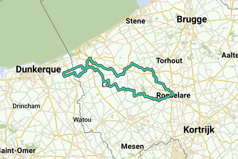 Die Radtour führt dich entlang der IJzer und durch ruhige Dörfer wie Sint-Jacobskapelle & Oudekapelle, wo die 100 km weiter in Richtung ‘Lampernisse’ radeln, einem vergessenen Dorf in der ‘Westhoek’. Durch die flache Polderlandschaft schlängeln wir uns in Richtung ‘Steenkerke’, dem Dorf von Willem Vermandere, und ‘Veurne’. Du radelst durch das historische Zentrum.