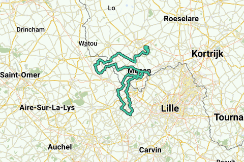 Diese Tour führt Sie durch die Grenzhügel der "Monts de Flandres" (Kemmel, Mont des Cats, Crête de Messines usw.) auf den Spuren der mythischen Hills 60-61-62-63 (Bunker, Gräben, Krater und verschiedene emblematische Monumente) mit einem Halt auf der Terrasse einer netten kleinen Bar und zurück im Bereich des Bellewaerde Parks.