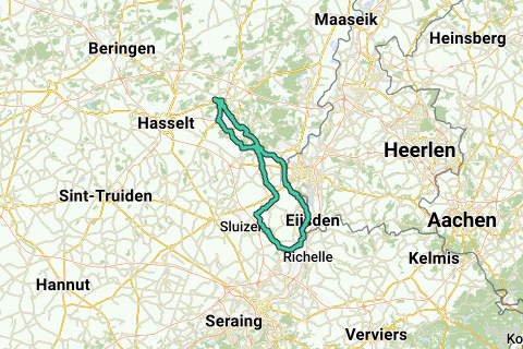 Von Middenkruis 16, 3600 Genk Boxbergheide, Belgien nach Munsterbilzen- Gellik- Veldwezelt- Vroenhoven- Kanne- Lixhe- VISE- Heure le Romain- Houtain Saint Simeon- Bassenge- Roclenge sur Geer- Millen- Heukelom- Vlijtingen-Mopertingen- Eigenbilzen- Kanal nach Genk Boxbergheide.
