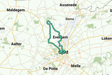 Diese Nordroute von De Hartstocht kreuzt Gent, Evergem, Sleidinge und Lievegem.