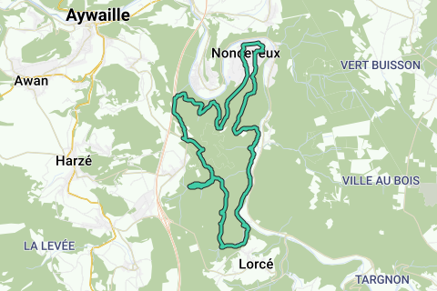 Wilder Wanderung, die an der Kirche von Nonceveux beginnt. Nach einigen hundert Metern Asphalt tauchst du in den Wald ein und kommst die nächsten 20 km nicht mehr heraus. Das Geräusch von plätscherndem Wasser ist nie weit entfernt.