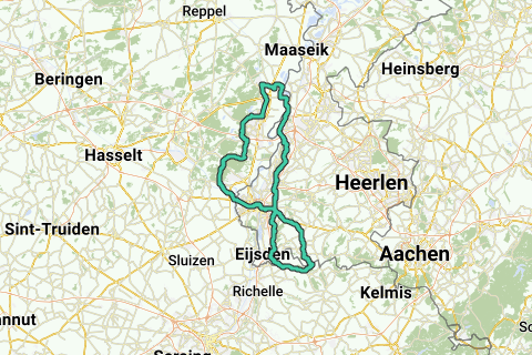 S.M.V. - S.G.V. – Mesch – nicht auf die große Straße, sondern am Wechselbüro vorbei – über kleine Straßen und Radwege parallel zur normalen Straße – Rijckholt – Gronsveld – Heer – Amby – Ende der Radwege – Brücke über – Rothem – unter der Autobahn hindurch, rechts Heiveld - Kasen - Moorveld - Hussenberg - Catsop - Elsloo - 45 - 27 Meers – Maasband – Berg aan de Maas – Übergang mit der Fähre nach Stokkem – 50 - 49 - 48 Dilsen - Lanklaar - 55 Maasmechelen - 60 - 61 - 63 - 62 - Gellik - Veldwezelt - 11 - Maastricht - Heugem – Heer – Berg - Cadier en Keer – Honthem - Bruisterbos - Banholt - Bergenhuizen - Noorbeek - Vroelen - Ulvend – De Plank - S.M.V.