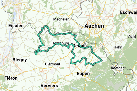 Rundfahrt Voerstreek 23 von Slenaken. Start/Ziel: großer Parkplatz am Fuß des Loorbergs Slenaken. Anstiege: Grensweg Slenaken 400 m., max. 10,0 %. Kasteelstraat Teuven (B) 1.200 m., max. 10,0 %. Rue Terstraeten Terbruggen (B) 1.900 m., max. 7,0 %. Rue de Grunebempt Gemmenich (B) 1.200 m., max. 6,0 %. Rue de Moresnet Moresnet-Chapelle (B) 900 m., max. 6,0 %. Gostert Hauset (B) 1.100 m., max. 12,0 %. Rue Langhaag (teilweise) Montzen (B) 350 m., max. 6,0 %. Rue de Hombourgh Montzen (B) 2.100 m., max. 7,0 %. Mur de Grises Pierres Aubel (B) 500 m., max. 15,0 %. Côte de Jean-Sart St. Jean-Sart (B) 3.300 m., max. 6,0 %. Kwinten/Op de Eiken St. Martens-Voeren 1.800 m., max. 8,0 %. Kwakhaag Noorbeek 850 m., max. 7,0 %. In der Route gibt es auch mehrere namenlose Anstiege. Höhenmeter: 1.139. Kaffeepause: Gastronomie Place des Combattants oder Place de la Gare, Welkenreadt (B).