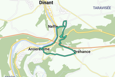 Gehen Sie über die Brücke der Lesse und beginnen Sie sofort mit einer Treppe, die Ihnen einen schönen Blick auf die Maas und den Damm von Anseremme bietet. Erwarten Sie einige schöne Panoramen. Sie gehen direkt unter dem großen Viadukt von 'Dinant Adventure' vorbei. Wunderschönes Panorama über Dinant und die Maas. Gehen Sie dann wieder hinunter. Sie überqueren die Straße von Dinant zur Autobahn und folgen dem Fußweg bis fast zur Maas. Rechts gibt es unerwartet eine kleine Treppe an einer Elektrizitätskabine, die Sie wieder den Berg hinauf schickt. Hier folgen Sie dem GR. Nach dem Aufstieg überqueren Sie eine kleine Ebene und gelangen zur Sternwarte. Durch das Dorf und dann hinunter zur Maas. Seien Sie vorsichtig, wenn Sie hier in den Wald gehen, denn Sie müssen der rechten Abzweigung folgen. Der Abstieg führt Sie durch eine vergessene Gasse zur Maas. Nach einem schönen Blick auf Dinant gehen Sie wieder unter dem Viadukt zurück zu Ihrem Ausgangspunkt.