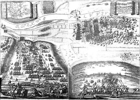 Mit der Kriegserklärung Frankreichs an den Habsburger Kaiser hatte Im Dreißigjährigen Krieg 1635 die Phase des schwedisch-französischen Krieges begonnen. Der Krieg war ein politisch-strategischer Eroberungs-Krieg geworden und der ursprünglich wichtige religiöse Faktor war nicht mehr bedeutsam. Nicht mehr nur Protestanten und Katholiken trafen aufeinander, sondern das katholische Frankreich, das im Innern gegen die Hugenotten kämpfte, kämpfte nach außen auf Seiten der deutschen und schwedischen Protestanten gegen das katholische Spanien und gegen die Truppen des katholischen Habsburger Kaisers, während fast alle protestantischen Fürsten und Städte im Friedensvertrag von Prag ihr Bündnis mit den Schweden gebrochen hatten und mit dem Kaiser Frieden geschlossen hatten.