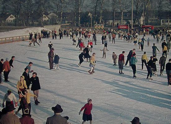 1878 erteilte der Zürcher Kantonsrat erstmals die Konzession zur Benutzung des benachbarten Mattenbachs für die Errichtung eines Eisfelds. Ein Jahr verpachtete der Stadtrat von Winterthur ein Teil des Zelgli an den neu gegründeten Winterthurer Schlittschuh-Club mit dem Auftrag zwei Eisfelder zu errichten und zu betreiben. 1886 wurden die Eisfelder eingezäunt und eine Holzhütte für Personal und als Wirtschaftsraum errichtet. 1926/29 wurde erstmals eine elektrische Beleuchtung erstellt die die seit 1909 bestehenden sechs Karbid-Azetylen-Lampen ersetzten. 25 Jahre später wurden diese beim Hockeyfeld durch eine modernere Beleuchtung ersetzt. Dank eines Gönners konnte 1942 neben der Holzhütte ein Clubhaus errichtet werden. 1944 fanden auf der riesigen Eisfläche Schweizer Meisterschaften im Eisschnelllaufen statt. 1953 kaufte die Stadt die Anlage für 37'000 Franken vom WSC ab, da dieser die Errichtung trotz finanzieller Zuschüsse der Stadt nicht mehr bewältigen konnte und das Geld für die Bezahlung von Schulden benötigte. Für den Betrieb war der Club jedoch weiterhin zuständig.