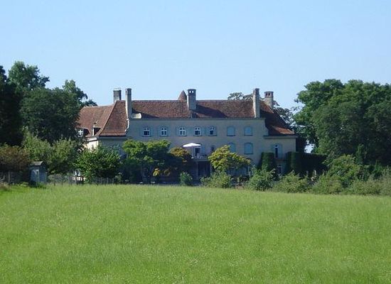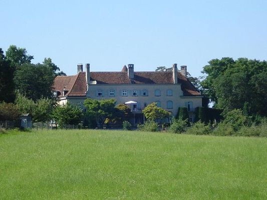 Generaldirektor Erwin Hürlimann liess für sich und seine englische Gemahlin Eleanor, geb. Ridge , auf dem Gebiet mehrerer von ihm erworbener und dann zum Teil abgerissener Bauernhöfe ein Landgut anlegen. Die Landstrasse Buonas – Cham wurde landeinwärts verlegt, um den Bauplatz auf der leichten Anhöhe über dem Zugersee zu arrondieren; sie bildet mit ihrer mauerbefestigten Schneise die Westgrenze des umfangreichen Anwesens. Die Planung erfolgte durch die britischen Architekten Howard Robertson und J. Murray Easton; die Gartenanlagen durch Russell Page.
