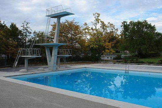 Sie beinhaltet unter anderem einen Restaurant-Pavillon im Landi-Stil und einen eleganten Zehnmeter-Sprungturm, welchen Max Frisch auch Bertolt Brecht zeigte, als dieser während der Bauphase zu Besuch kam. Ein vom Max Frisch-Archiv gestalteter Ausstellungsraum informiert die Besucher über Leben und Werk des Schriftstellers.