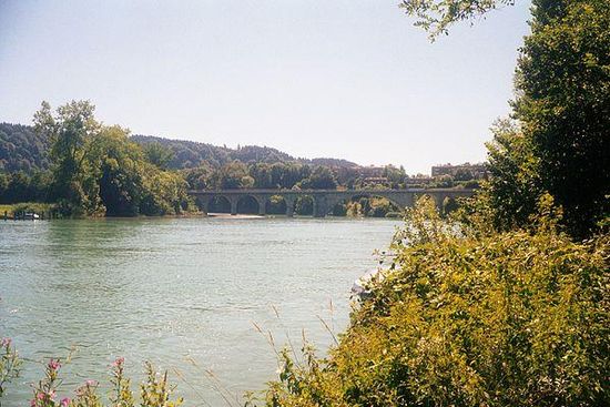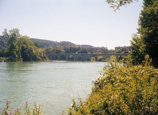 Die 1920 eröffnete, 174 Meter lange Strassenbrücke, eine elegante Betonkonstruktion mit einem weiten mittleren Hauptbogen und viaduktartig angeordneten kleineren Bogenreihen auf beiden Seiten, führt über die ebenfalls um 1920 zum Wohlensee aufgestaute Aare.