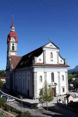 Eine Kirche ist in Ruswil seit dem Jahr 1000 nachgewiesen. Das heutige Kirchengebäude wurde in den Jahren 1782–1793 errichtet. Der Bau von Schiff und Chor wurde dem Baumeister Niklaus Purtschert übertragen, während mit den Bau des Kirchturms der aus dem Tirol stammende Architekt Jakob Singer beauftragt wurde.