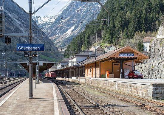 Der Bahnhof wurde 1882 im Zuge der Eröffnung des Gotthardtunnels unmittelbar nördlich seines Nordportals erbaut. Er entwickelte sich zu einem Verkehrsknotenpunkt, als 1917 die Schöllenenbahn eine Verbindung nach Andermatt herstellte. Nun bestand ein Anschluss dieses Wintersportortes an den internationalen Bahnverkehr mittels Umstieg in Göschenen, was zur Folge hatte, dass zeitweise internationale Schnellzüge einen Halt einlegten.