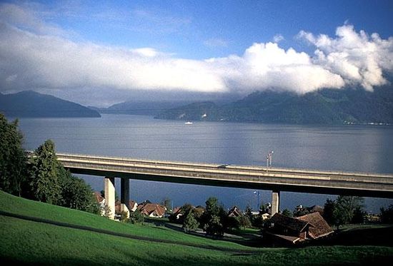 Die Brücke mit einer Gesamtlänge von 3.150 m wurde 1980 fertiggestellt. Die Kosten beliefen sich auf 61,3 Mio. CHF . Die Einzelspannweiten betragen 40,1 + 55,2 + 2 × 55,1 + 52 × 55,0 + 47,0 + 34,5 m und ergeben eine Gesamtspannweite von 3'147 m in der Brückenachse. Sie hat eine Überbauhöhe von 3,0 m, die Überbaubreite oben beträgt 2 × 10,9 m und die Überbaubreite unten 2 × 4,5 m. Ca. 20'000 Fahrzeuge pro Tag passieren das Bauwerk .