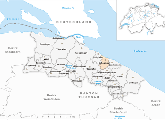 Von 1803 bis 1993 gehörten die Ortsgemeinden Scherzingen, Bottighofen und Landschlacht zur Munizipalgemeinde Scherzingen. Am 1. Januar 1994 vereinigten sich die Ortsgemeinden Landschlacht und Scherzingen zur politischen Gemeinde Münsterlingen; Bottighofen wurde zur eigenen politischen Gemeinde.