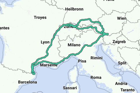 Basel, München, Salzburg, Faakersee, Slovenien, Basel, Argeles, Rosas, Cote d'Azur, Verona Faakersee, Innsbruck Basel. 8 verschiedene Länder in 11 Tagen ;-)