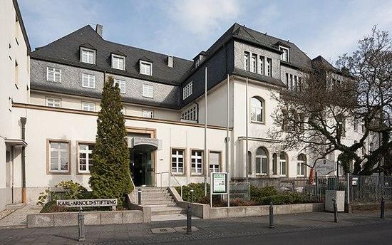 Das Adam-Stegerwald-Haus geht auf eine Villa des Barmer Kommerzienrates Philipp II Barthels aus dem frühen 20. Jahrhundert zurück, die nach einem Entwurf des Honnefer Architekten Ottomar Stein entstand. 1924 erwarb sie Jakob Kaiser, Politiker der Zentrumspartei, für den katholischen Sozialverein Arbeiterwohl als Tagungszentrum sowie als Mutter-Kind-Erholungsheim . 1927/28 wurde die Villa unter Abriss bestehender Gebäude um einen Anbau erweitert. 1930/31 begründete sich hier der „Königswinterer Kreis“ als eine Vereinigung katholischer Sozialethiker und Sozialwissenschaftler, die ein gesellschaftspolitisches Konzept für den politischen Katholizismus in Deutschland ausarbeitete. In der Zeit des Nationalsozialismus war das Anwesen ab Mai 1933 für die Deutsche Arbeitsfront beschlagnahmt und diente unter dem Namen Robert-Ley-Schule als eine von zunächst zwei preußischen Landesführerschulen, die für 16 Gaue im Westen des Deutschen Reiches zuständig war. Ihre feierliche Einweihung erfolgte am 24. Juli 1933 im Beisein von DAF-Leiter Robert Ley, seit Anfang 1935 führte sie den Namen „Reichsschulungsburg“ und wurde zunehmend als reine Gauführerschule der DAF genutzt. Das Haus verfügte bei einer Kapazität von 75 Teilnehmern neben den Unterrichts- und Versammlungsräumen über Lesezimmer, Bücherei und Raucherzimmer; die Zimmer waren hinsichtlich ihrer Ausstattung mit einem erstklassigen Hotel vergleichbar. 1937 kam mit dem Hotel Mattern eine zweite Landesführerschule in Königswinter hinzu.