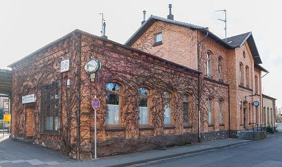 Der Bahnhof liegt mit seinem Empfangsgebäude und dem Hausbahnsteig am Proffenweg , einem Teilstück der früheren Bachstraße, an der Nordseite der Heisterbacher Straße . Die Stadtbahnhaltestelle Oberdollendorf der Siebengebirgsbahn befindet sich wie der Bahnhof Niederdollendorf, etwa 200 m weiter östlich, an der Heisterbacher Straße und ermöglicht damit einen schnellen Umstieg.