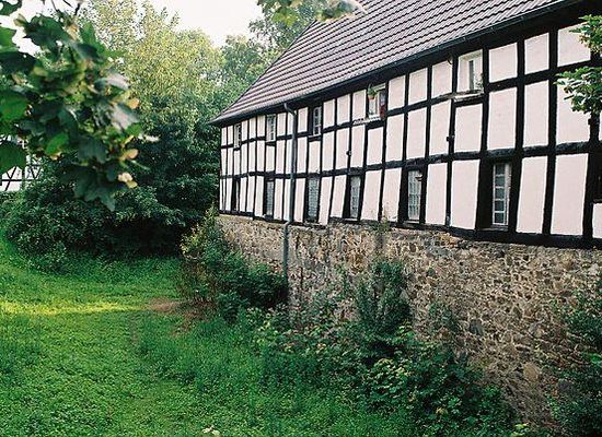 Die ehemalige Wasserburg liegt im Talgrund der Agger auf einer Höhe von 64 m ü. NHN, ca. einen halben Kilometer westlich des Lohmarer Stadtzentrums. Das Gelände liegt außerhalb der Ortsbebauung unmittelbar zwischen Fluss und Bundesautobahn 3.