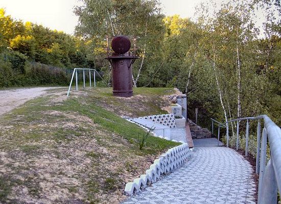 Der Bunker Steinenbrück befindet sich an einer Abraumhalde des ehemaligen Bergbaugeländes der Grube Lüderich in Overath-Steinenbrück. Der Weg zum weithin sichtbaren Barbarakreuz in Steinenbrück führt am Bunker vorbei. Kreuz und Bunker liegen 149 m Luftlinie voneinander entfernt. Oberirdisch sichtbar ist ein mit Deckel verschließbarer Einstieg.