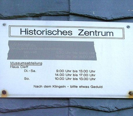 Ältester Bestandteil des Historischen Zentrums ist das Wohnhaus der Werkzeugkaufleute Cleff. Die reizvolle äußere Gestaltung des 1778 erbauten repräsentativen Gebäudes verbindet Stilmerkmale bürgerlichen Rokokos mit den Formen und der schwarz-weiß-grünen Farbpalette der bergischen Bauweise.