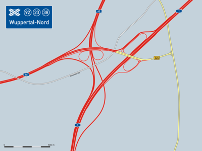 Das Autobahnkreuz Wuppertal-Nord ist ein Autobahnkreuz in Nordrhein-Westfalen in der Metropolregion Rhein-Ruhr. Es verbindet die Bundesautobahn 1 mit der Bundesautobahn 43 und der Bundesautobahn 46 , sowie mit der Bundesstraße 326. Als eines der wenigen in Deutschland ist das Kreuz nicht vollständig planfrei ausgebaut und weist zugleich eine sehr ungewöhnliche Bauform auf.