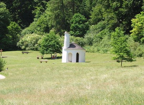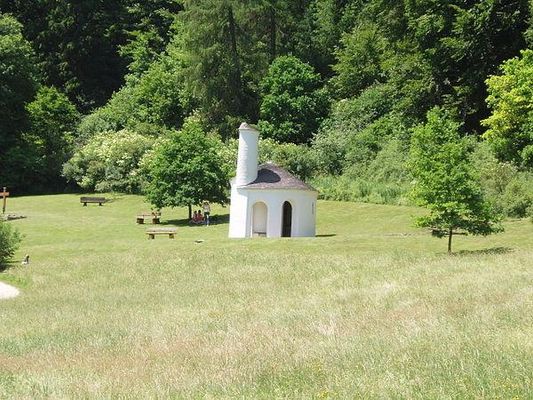 Einer Legende nach bewohnte die heilige Magd Gunthildis von Suffersheim im 11. Jahrhundert eine Einsiedelei, bei der eine Kapelle zu ihren Ehren gebaut wurde, die im 13. Jahrhundert um einen Neubau vergrößert wurde. Eine Wallfahrt ist erstmals von 1398 schriftlich bezeugt. Die Gebeine der heiligen Gunthild sollen am Ende des 14. Jahrhunderts von der nahen Michaeliskirche in die Kapelle gebracht worden sein. Im 16. Jahrhundert verfiel die Kapelle nach der Reformation und sie wurde während des Dreißigjährigen Kriegs vollständig zerstört. Von der mittelalterlichen Wallfahrtskirche wurden bei Ausgrabungen im Jahr 1957 Fundamentzüge freigelegt. Von 1996 bis 1998 wurden weitere archäologische Grabungen durchgeführt.