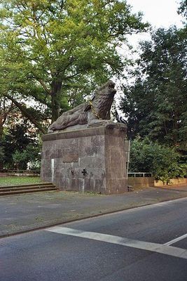 Der überdimensionale, durch einen in der rechten Seite steckenden Pfeil tödlich getroffene, steinerne Löwe brüllt seinen Schmerz in die Richtung des „Erbfeindes“ Frankreich und erinnert bildlich an die Opfer dieses Ersten Weltkrieges.