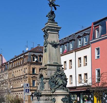 Der Brunnen wurde am 16. Oktober 1890 enthüllt. Das Königreich Bayern kam für die Hälfte der Kosten von 58.500 Mark auf. Die andere Hälfte des Betrags stammte von der Ludwigseisenbahn-Gesellschaft, von der Stadt, von Vorstadtvereinen und privaten Mäzenen wie Ludwig Ritter von Gerngroß.