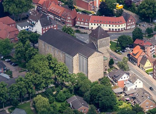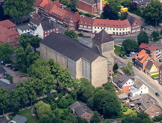 Die Heilig-Kreuz-Kirche wurde 1936 bis 1938 an der Lüdinghauser Straße von dem Kirchenbaumeister Dominikus Böhm als zweite katholische Pfarrkirche gegen viele Widerstände in der Stadt erbaut und durch den damaligen Bischof von Münster Clemens August Graf von Galen als letzter Kirchenneubau Deutschlands vor dem Zweiten Weltkrieg am 16. November 1938 eingeweiht.