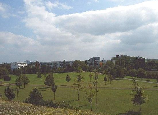 Der Park liegt im nordwestlichen Teil der Stadt im Stadtteil Neustädter Feld und hat eine Größe von 42 Hektar .