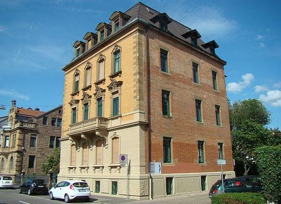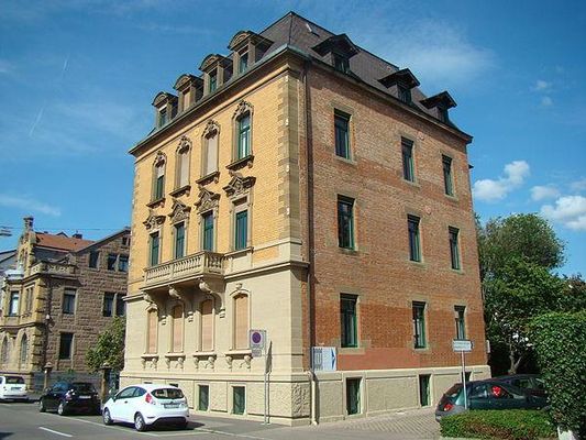 Das Wohnhaus liegt an der Uhlandstraße, einer der Nord-Süd-Achsen des historischen Industrie- und Arbeiterwohngebiets am Südrand der Heilbronner Altstadt.