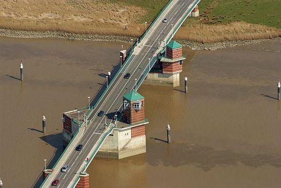 Die Jann-Berghaus-Brücke über die Ems in Leer in Ostfriesland gehört nach der Erasmusbrücke zu den größten Klappbrücken Mitteleuropas. Sie liegt zwischen den Leeraner Stadtteilen Leerort und Bingum im Verlauf der B 436.