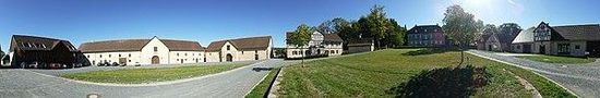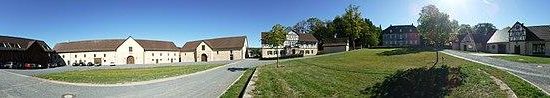 Es liegt inmitten eines weitläufigen und noch immer landwirtschaftlich betriebenen Gutskomplexes mit einem 4 ha großen Park und Wirtschaftsgebäuden, unmittelbar westlich der Landesstraße 3152 von Schwarzenborn nach Frielendorf.