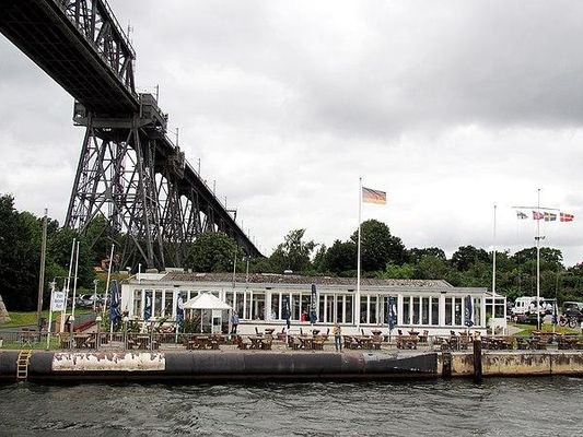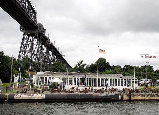 Entstanden ist die Schiffsbegrüßungsanlage, die die Schiffsbegrüßungsanlage Willkomm-Höft in Wedel als Vorbild hat, aus der Idee, Touristen in Rendsburg eine weitere Attraktion zu bieten. Zunächst war die Anlage am Restaurant Brückenterrassen nur am Wochenende besetzt, mittlerweile werden Schiffe täglich von 10 Uhr bis zum Einbruch der Dunkelheit durch das Dippen der jeweiligen Nationalflagge und das Anspielen der Nationalhymne begrüßt. Gäste an der Schiffsbegrüßungsanlage bekommen Informationen über die den Kanal passierenden Schiffe. Anfangs mussten die Informationen über die Schiffe von den Schiffsbegrüßern zusammengesucht werden. Sie bedienten sich dabei z. B. der Weichenwärter am Nord-Ostsee-Kanal. Inzwischen wird die Schiffsbegrüßungsanlage u. a. mit Informationen des Schiffsmeldedienstes in Hamburg auf elektronischem Weg versorgt.