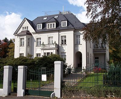 Die neubarocke Villa mit Chauffeurshaus steht auf einem großen Gartengrundstück. Sie wurde 1906 nach Plänen der Architekten Heinrich Kayser und Karl von Großheim für den Fabrikanten Carl Berg errichtet. Durch Erker, Vorbauten und die rückwärtige Loggia wirkt der Putzbau asymmetrisch. Das Walmdach ist durch Aufbauten wie Gauben und Zwerchgiebel gegliedert. Eine zweiläufige hölzerne Treppe führt in das Obergeschoss der zweigeschossigen Halle. In das Esszimmer wurden Flachtonnengewölbe eingezogen; Otto von Ernst bemalte die Wände 1909 mit Jagdszenen. Bemerkenswert sind der Lastenaufzug und die Staubsaugeanlage. Der Terrassengarten ist in der Nähe des Hauses regelmäßig gestaltet und in den anderen Bereichen in landschaftlicher Gestaltung erhalten.
