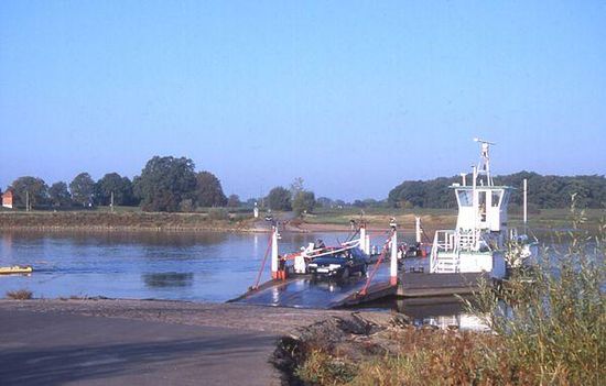 Bereits 1272 wurde der Stadt Sandau von den askanischen Markgrafen der Betrieb einer „Freien Fähre“ gestattet. Über Jahrhunderte blieb die Fährgerechtigkeit ein Recht der Stadt. 1703 wurde die Fähre für 37 Taler und 12 Groschen im Quartal verpachtet. Bei den heftigen Kämpfen um Sandau am Ende des Zweiten Weltkriegs erhielt die Fähre drei Volltreffer. Seit 1962 wurde die Fähre dann wieder durch die Stadt Sandau betrieben. 1991 wurde ein neues Fährfahrzeug angeschafft.