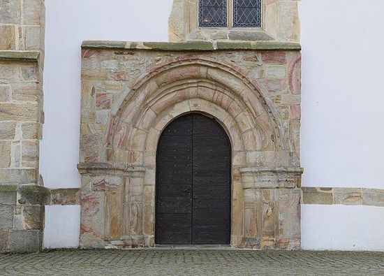 Die ursprüngliche Eigenkirche wurde im 12. Jahrhundert gebaut. Ursprünglich war sie der Hl. Agatha geweiht. Bei Ausgrabungen im Jahr 1966 wurden die Fundamente von zwei Vorgängerkirchen gefunden. Die ältere war ein flachgedeckter Saalbau mit eingezogenem, quadratischen Chor und stammt aus der 1. Hälfte des zwölften Jahrhunderts. In dieser Zeit wurde auch der ursprünglich nicht gewölbte heutige Westturm errichtet. Die zweite Kirche war ein spätromanischer, etwas breiterer Gewölbesaal. Von dieser Kirche aus der Mitte des 13. Jahrhunderts ist das Nordportal erhalten. Das heutige Langhaus ist eine spätgotische Saalkirche mit dreiseitigem Chorschluss. Die zweiteiligen Fenster sind mit Fischblasenmaßwerk gefertigt.