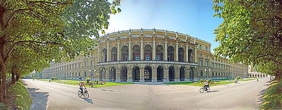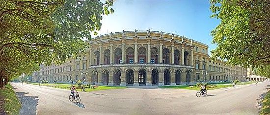 Der Herkulessaal befindet sich im Festsaalbau, der den nördlichen Abschluss der Residenz zum Hofgarten hin bildet. Dieser Trakt war unter Ludwig I. erbaut und enthielt ursprünglich eine Raumfolge, die im Thronsaal gipfelte. Im Dachbereich hatte Ludwig II. einen Wintergarten mit künstlichem See, Maurischem Kiosk, Fischerhütte und exotischer Flora und Fauna anlegen lassen, der jedoch schon 1897 abgetragen wurde. 1944 wurde auch dieser Flügel der Residenz durch Bombentreffer schwer beschädigt, jedoch nicht stärker als andere Teile, die bald nach dem Krieg unter Verwendung ausgelagerter Innenausstattung leidlich originalgetreu wiederhergerichtet wurden. Auch die Festsäle waren nicht unrettbar verloren, doch standen die Kunst des 19. Jahrhunderts und speziell die klassizistisch-historistische Münchner Schule tief im Kurs und so entschied man sich, wie in vielen anderen Fällen , gegen einen Wiederaufbau.