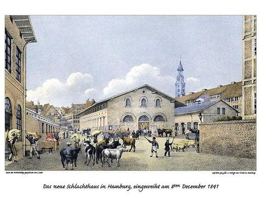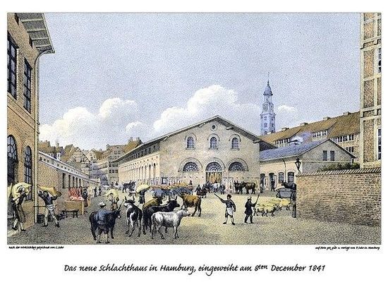 Wie viele andere Einrichtungen, die entweder lärmbelastet oder gefährlich waren, sehr viel Platz beanspruchten oder mit störenden Emissionen verbunden waren, wurde auch der zentrale Schlachthof aus der inneren Stadt Hamburgs in die Vorstadt verlegt. Er hatte von 1611 bis 1839 am Herrlichkeitenfleet mitten in der südlichen Innenstadt gelegen und wurde von dort an das Johannisbollwerk in die Nähe der „Vorsetzen“ in der südlichen Neustadt verlegt. Das rapide Bevölkerungswachstum der Stadt und damit der Bedarf an Baugrund für die in großer Zahl entstehenden Mietwohnungen in engen „Gängen“ und „Terrassen“ erforderte jedoch bald eine erneute Verlagerung.