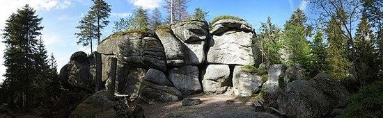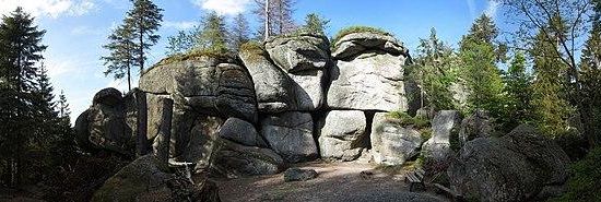 Die Weißmainfelsen sind eine mächtige Granit-Felsengruppe am Osthang des Ochsenkopfes im Hohen Fichtelgebirge . Der höchste Punkt liegt auf einer Höhe von 929 m. Die Felsen bestehen aus von Wollsackverwitterung geprägtem Kerngranit und sind ein geschütztes Naturdenkmal.