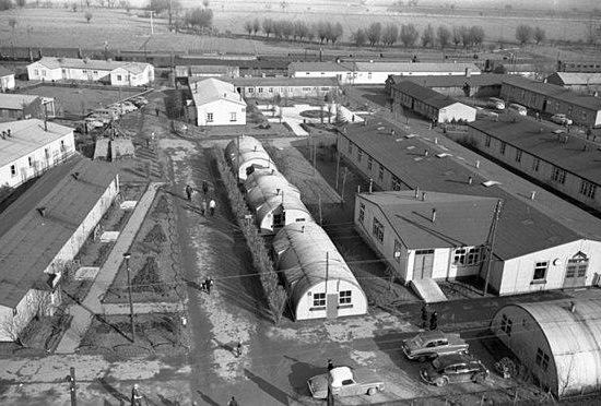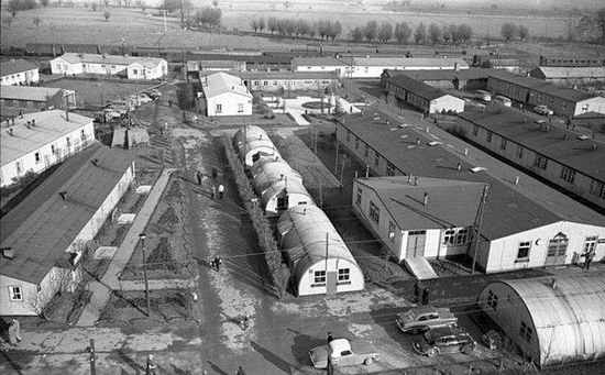 Das Grenzdurchgangslager bestand aus ehemaligen Stallgebäuden sowie Baracken und Nissenhütten. Die Lage Friedlands am Grenzpunkt der Britischen Besatzungszone , der Amerikanischen Besatzungszone und der Sowjetischen Besatzungszone sowie an der wichtigen Bahnstrecke zwischen Hannover und Kassel prädestinierten den Standort für ein Flüchtlingslager. Zu Beginn kamen Tausende Angehörige der Wehrmacht am Tag. Sie erhielten den sogenannten D2-Schein als Dokument ihrer Entlassung aus dem Militärdienst, ihren Wehrsold und ein Entlassungsgeld, außerdem durch die Caritas Zivilkleidung aus Spenden.