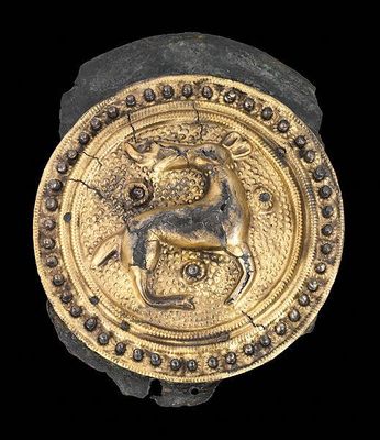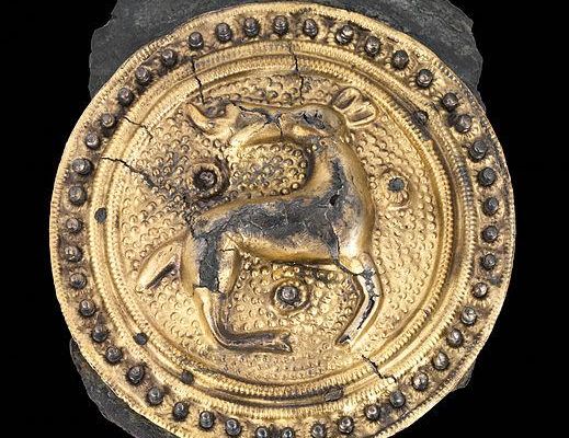 Die Fundstelle liegt auf dem Flurstück Im schwarzen Dorn an der nordwestlichen Ecke der Tangendorfer Feldmark, wo der Bauer Heinrich Wille 1930 bei der Abtragung des auf seinem Feld stehenden bronzezeitlichen Grabhügels die Scheibenfibel zusammen mit einer Haarknotenfibel und einer Lanzenspitze fand. Die Haarknotenfibel und die Lanzenspitze wurden dem Helms-Museum übergeben, dagegen verblieb die Scheibenfibel bei dem Tangendorfer Lehrer Heinrich Versemann, der sie für einen modernen Gegenstand hielt.