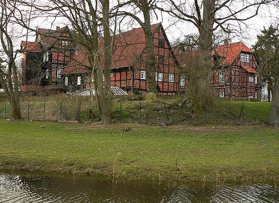 Schloss Ahlden in Ahlden in Niedersachsen entstand ab 1549 als Wasserschloss an der Aller. Der dreiflügelige Schlossbau ist heute in Privatbesitz und wird als Kunstauktionshaus genutzt.