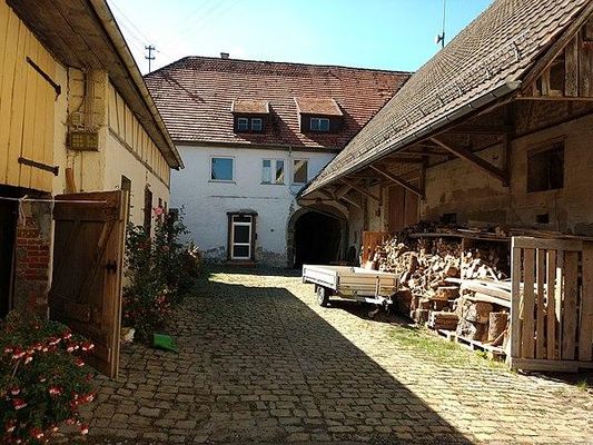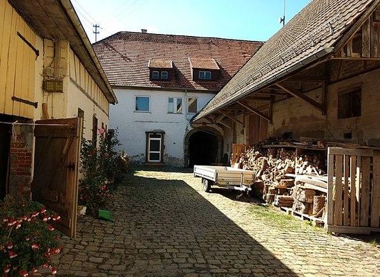 Das ehemalige Schloss steht auf einem von zwei Nebenschluchten eingefassten, südwestlich auslaufenden Bergsporn etwa 100 m über der Mündung des Eisbachs in den Kocher. Bergwärts vom Schloss stehen an der Zubringerstraße einige Anwesen bis hoch zu deren Abzweig von der oberen Kehre der Steigenstraße K 2633, die von Sulzbach hoch den Sporn erklimmt. Sie gehörten zusammen mit dem Schloss bis zur Verwaltungsreform von 1971 zu einer kleinen Altgemeinde, die dann als Schloßschmiedelfeld nach Sulzbach eingemeindet wurde.