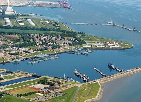 Mit der deutschen Wiederbewaffnung und dem Aufbau der Bundesmarine wurde die Küstenstadt Wilhelmshaven 1956 wieder Marinehafen. Am 2. Januar 1956 begannen die ersten Freiwilligen der neuen Bundesmarine der Bundeswehr ihren Dienst in Wilhelmshaven. Am 6. Juni 1956 liefen die ersten Schiffe ein, von den USA zurückgegebene Minenräumboote der früheren Kriegsmarine. Das neue Verteidigungskonzept sah auch die Errichtung eines Marinearsenals zur Instandhaltung der neuen Schiffseinheiten vor. 1957 wurde mit den Planungen auf dem Gelände der ehemaligen Werft der Kriegsmarine begonnen.