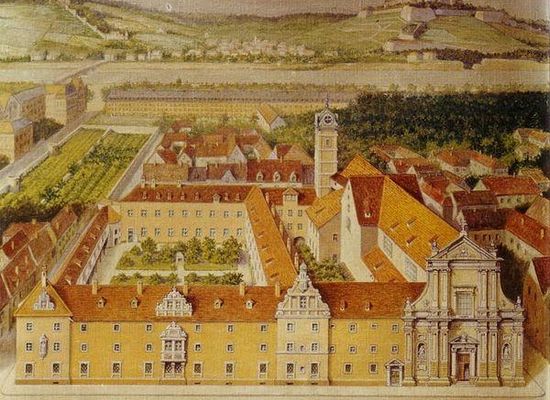 Am Ort des heutigen Karmelitenklosters bestand spätestens seit 1227 ein Kloster der Magdalenerinnen, der sogenannten Reuerinnen. Im Zuge der Reformation gingen die meisten Häuser dieses Ordens unter; das Würzburger Kloster wurde 1564 aufgegeben. Die leerstehenden Klostergebäude wurden 1627 den Unbeschuhten Karmeliten übergeben. Am 19. März 1669 wurde die wahrscheinlich von dem beritalienischen Architekten Antonio Petrini gestaltete barocke Klosterkirche St. Joseph und St. Maria Magdalena durch Weihbischof Johann Melchior Söllner geweiht. Zu Anfang des 18. Jahrhunderts diente das Kloster als Studienkonvent.