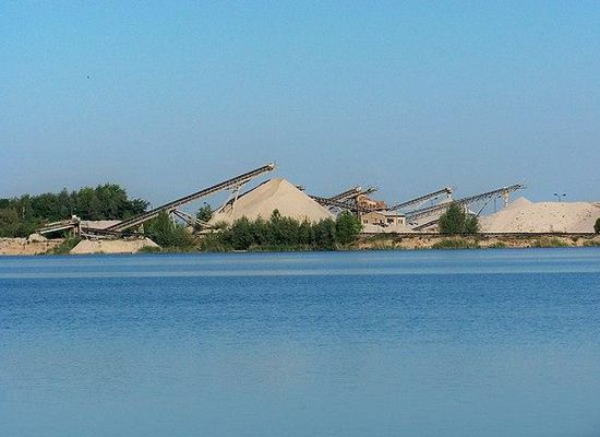 Im Jahr 1968 begann man im Gebiet zwischen Eilenburg und Sprotta mit dem Abbau von weichseleiszeitlichen und frühsaaleeiszeitlichen Flussschottern der Mulde. Der See besitzt keinen oberirdischen Zu- oder Abfluss. Sein Wasser speist sich aus dem oberflächennahen Grundwasser der Niederung der Mulde. Die Mulde als das nächste Fließgewässer ist etwa zwei Kilometer entfernt. Der See bzw. das Abbaugebiet werden begrenzt vom Siedlungsgebiet der Stadt Eilenburg im Westen, der Straße zwischen Eilenburg und Sprotta im Norden, der Straße zwischen Sprotta und Paschwitz im Osten und der Bahnstrecke Halle–Cottbus im Süden. Das Einzugsgebiet des Sees ist zurzeit nicht genau abzugrenzen, die Umgebung besteht aus Wald-, Acker- und Siedlungsfläche.