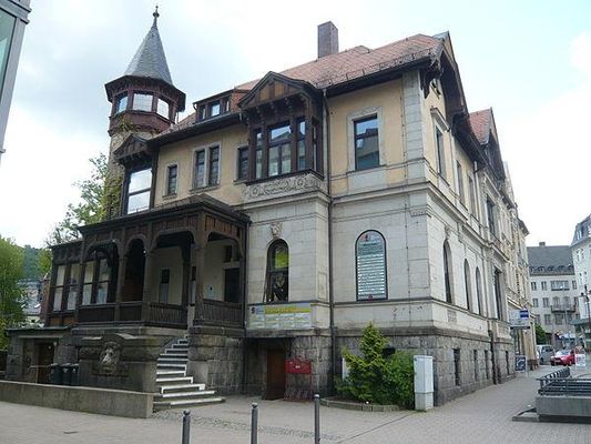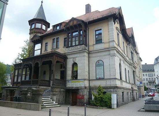Das Haus wurde von dem seit 1874 in Aue produzierenden Wäschefabrikanten Gantenberg bei dem Architekten Max Fricke in Auftrag gegeben. Dieser entwarf für das Privatgrundstück am früheren Ernst-Geßner-Platz eine zweietagige Villa im Jugendstil. Bis 1906 wurde das Haus mit Feldsteinsockel, Holzerker und Freitreppe sowie einem sechseckigen Spitztürmchen errichtet und von der Familie Gantenberg bis 1937 zu Wohnzwecken genutzt. Dann kaufte der Kinobesitzer Max Adler aus Oelsnitz das Gebäude samt großem Grundstück, auf dem hier in Aue ein modernes Lichtspieltheater gebaut werden sollte. In kurzer Zeit hatte die Stadtverwaltung die Genehmigung erteilt, das pompöse Kinogebäude wurde im neuklassizistischen Stil errichtet und lud die Filminteressenten bald zu Vorführungen. Adler stellte sein früheres Wohnhaus der Ortsgruppe der NSDAP zur Verfügung.